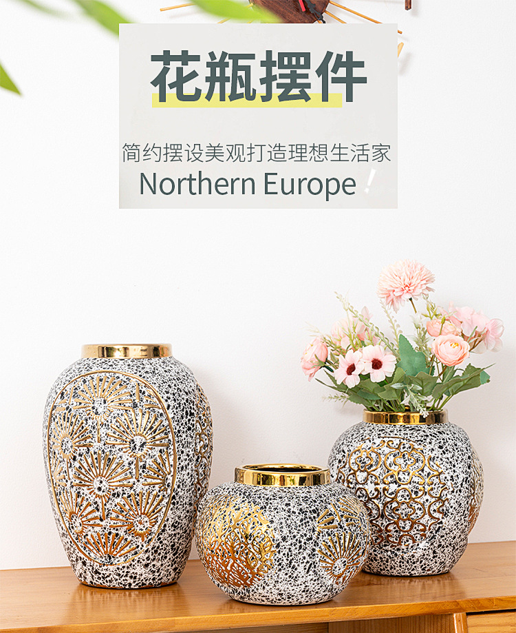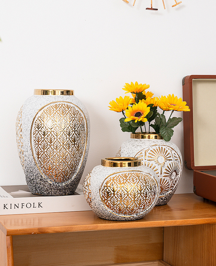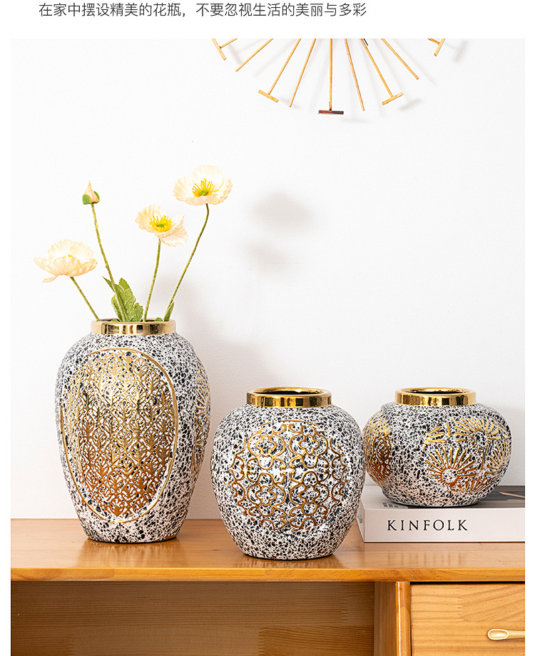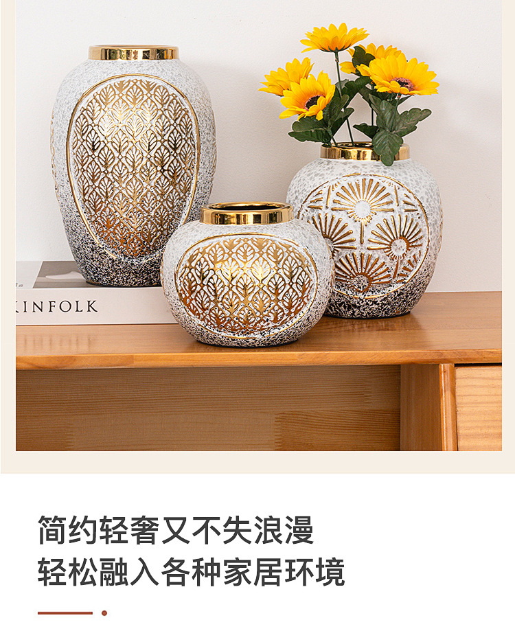 2023 New Nordic Simple Ins Wind High Appearance Level Ceramic Vase Hydroponic Flowers Living Room Flower Arrangement Electroplating Decoration Flower Device Cross Border Vase Simulation Flower Belt Vase Ceramic Vase Vase Wholesale