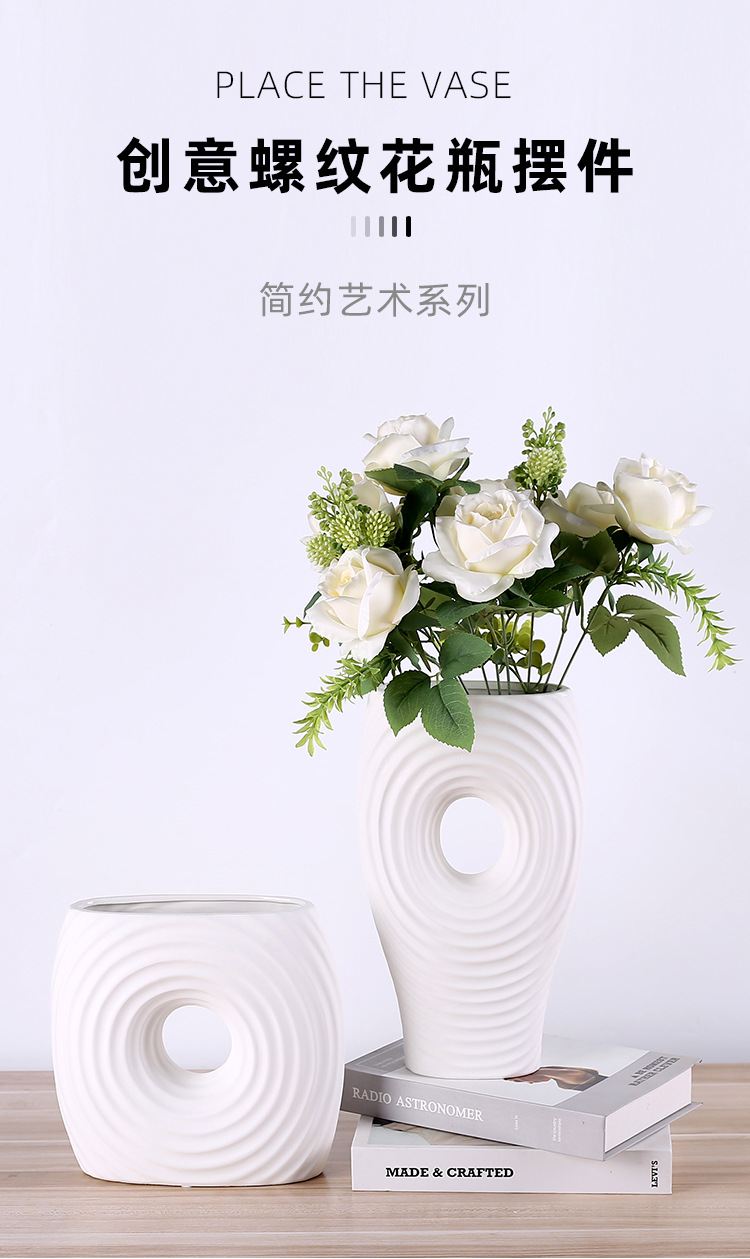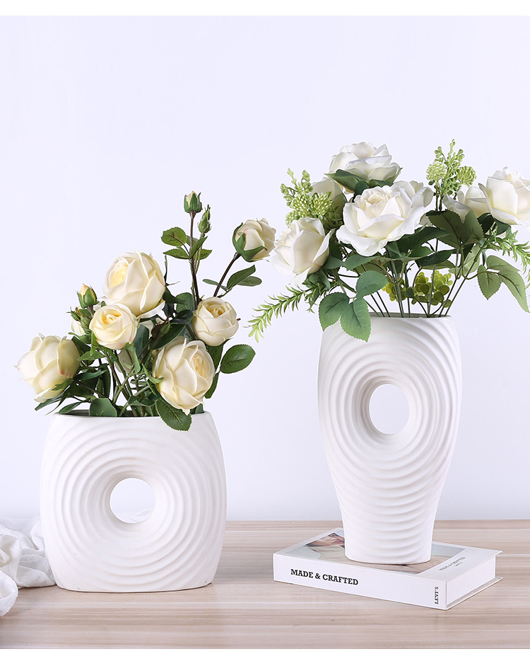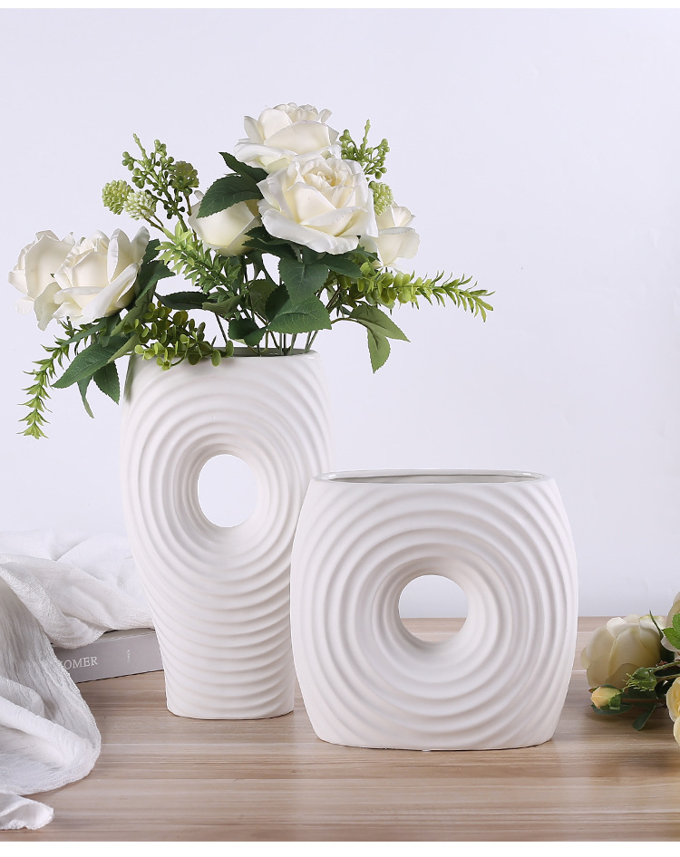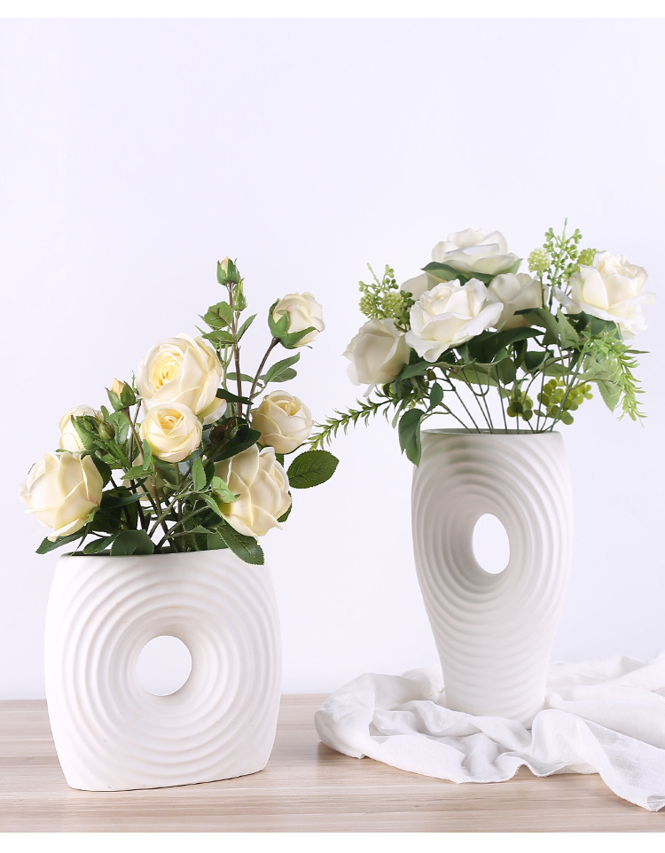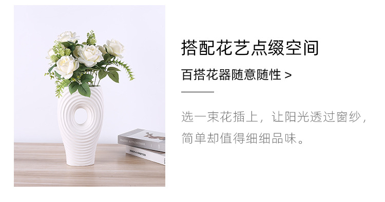 2024 New Nordic Modern Simple White Ceramic Vase Decoration Home Living Room Model Room Flower Arrangement Simulation Flower Desktop Decoration Home Decoration Art New Chinese Good