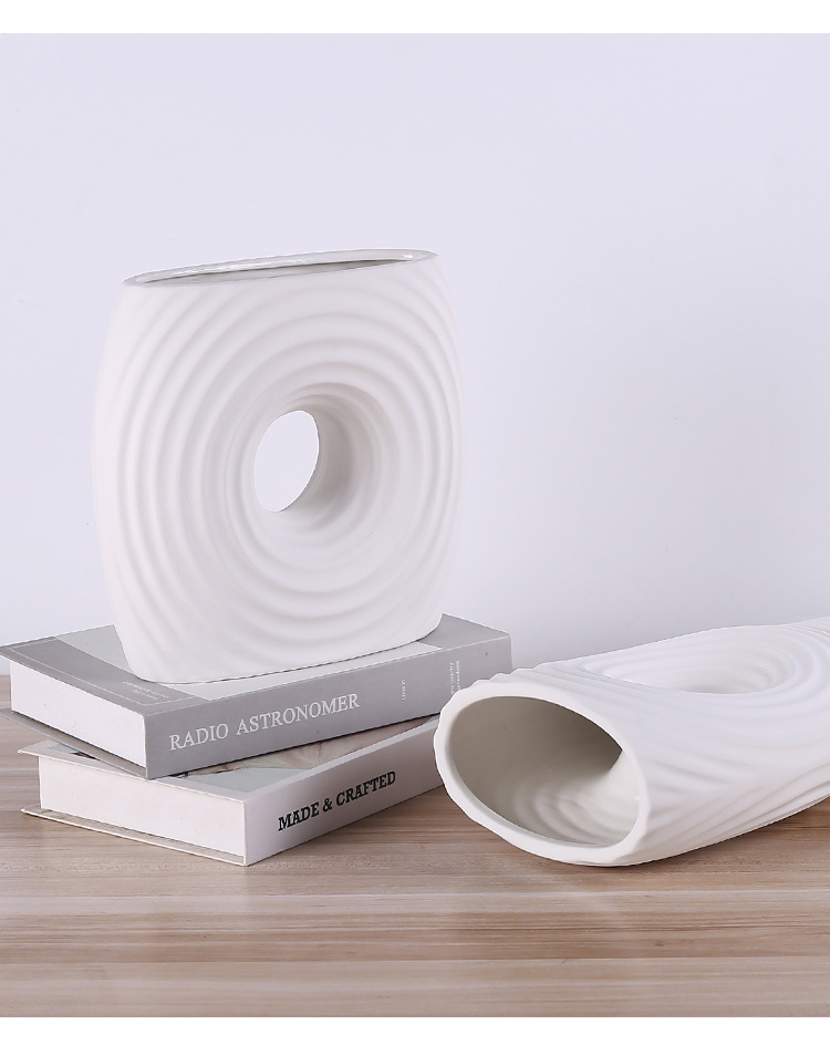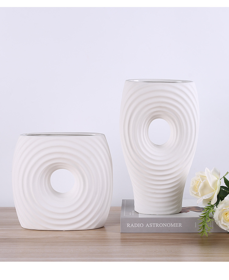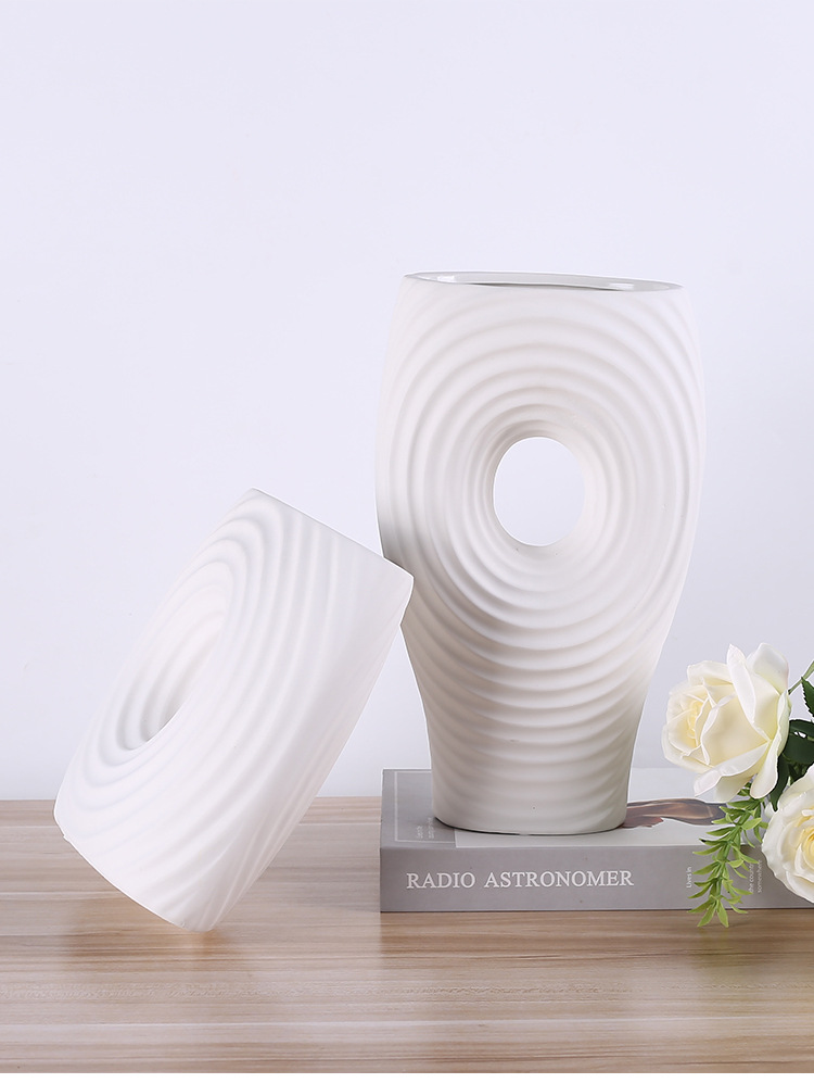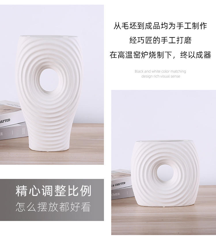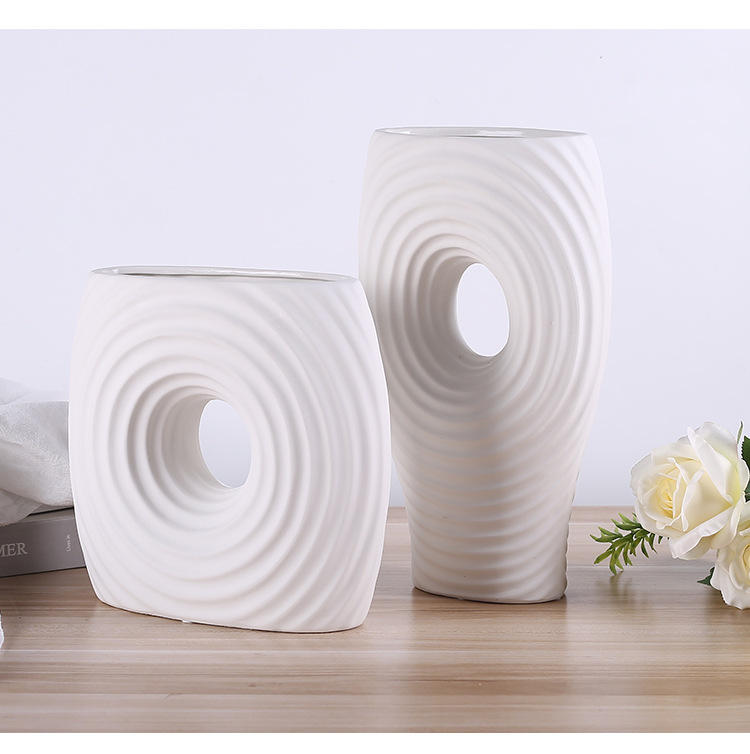 2024 New Nordic Modern Simple White Ceramic Vase Decoration Home Living Room Model Room Flower Arrangement Simulation Flower Desktop Decoration Home Decoration Art New Chinese Good